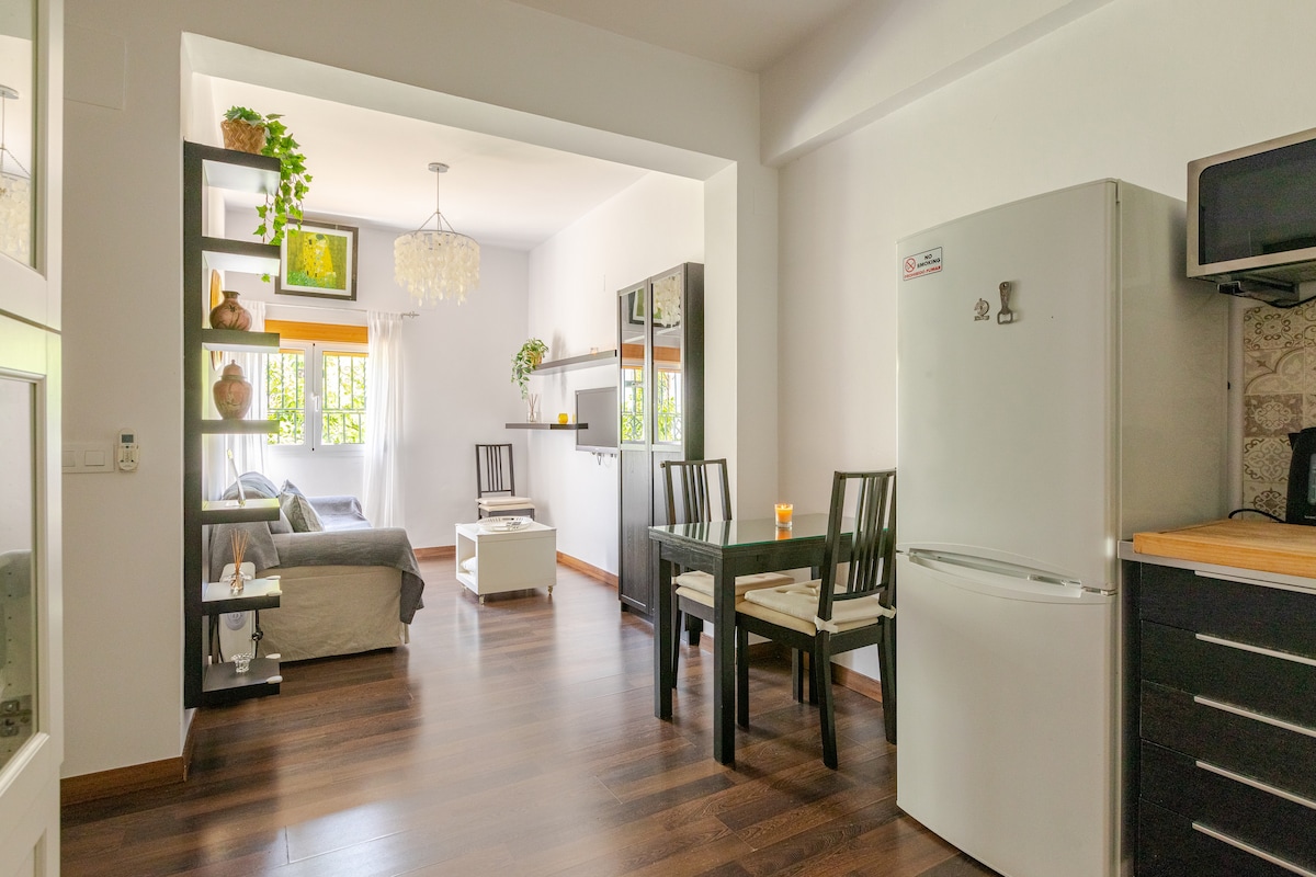 Situado en una animada calle del barrio de Santa Catalina, este apartamento de un dormitorio y salón con sofá cama, ofrece un diseño vintage con lujosos detalles. Cuenta con un espléndido balcón exterior y un patio interior que bañan las estancias con el sol de Sevilla. Tu anfitrión estará físicamente en la propiedad y disponible para cualquier cosa que necesites durante tu estancia. El barrio de Santa Catalina es un barrio popular del centro de Sevilla. Se encuentra a 2 minutos a pie de Las Setas y a 5 minutos de la zona de moda en la calle Feria. En escasos 10 minutos se llega al entorno de la Catedral y el Alcázar. Disponible servicio Netflix