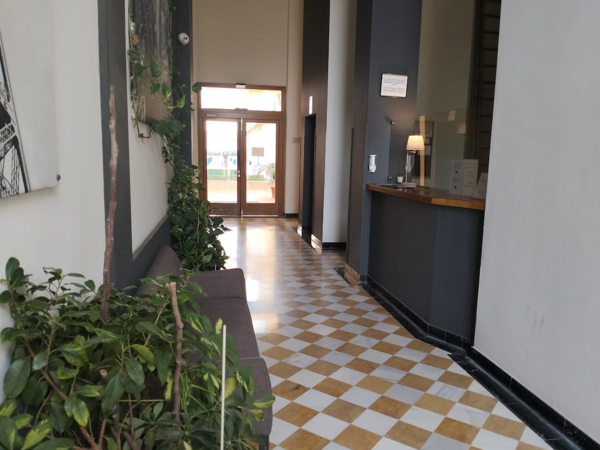 Apartamento en el que pasarás unos días estupendos si vienes a visitar Sevilla .Se encuentra en un barrio en el que reina la tranquilidad y lo mejor de todo es que a 70 metros está la parada del bus que te llevara en 15-20 minutos al centro de la ciudad donde se encuentran los monumentos y sitios más emblemáticos .Podrás disfrutar en su patio de un desayuno y disfrutar la terraza superior para tomar el sol ☀️