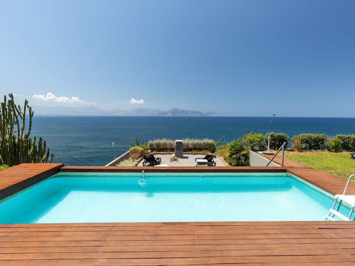 The villa is located within the peaceful natural marine reserve of Capo Gallo, right on the crystal waters of the sea (few steps from the beach) and is surrounded by the lush Mediterranean scrub and majestic rocks that turn pink at sunset. All rooms , both upstairs and downstairs overlook a spectacular sea view and from which you can enjoy unforgettable sunsets. The ideal place for a relaxing holiday!