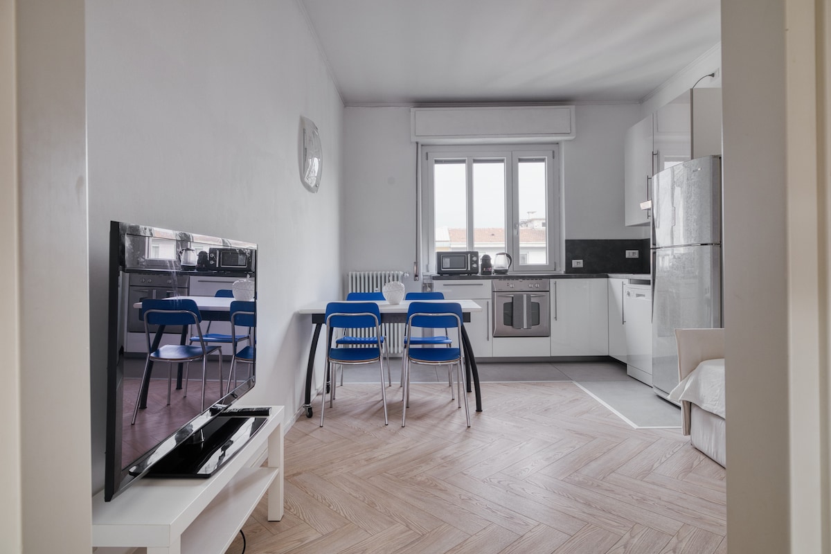 Stylish newly renovated 75 m² apartment in Milan’s modern CityLife/Portello—upscale, quiet, and well connected. • Ground-floor access (easy with luggage) • Self check-in • A/C • Ultra-fast Wi-Fi: 725 Mbps • Sleeps up to 4: 160×203 cm bed + very comfortable sofa bed • Walkable to CityLife Shopping District & Portello Shopping Center Metro: M1 Duomo ~10 min | M5 San Siro ~5 min Parking: free street parking nearby (subject to availability) + paid garage Parking Portello Fiera, Via Aldo Rossi 10