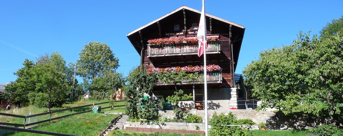 Ferien im historischen alten Walliserhaus Neue frisch renovierte 2.5 Zimmerwohnung im Zentrum (Dorfplatz) von Grengiols im Landschaftspark Binntal. 5 Autominuten von der Seilbahn Bettmeralp/Aletscharena. Restauarant im Ergeschoss und Einkaufsladen nebenan. Das Haus wurde 1802 nach dem grossen Dorfbrand von 1799 wieder aufgebaut. Grengiols ist Ausgangspunkt für unzählige Bike-und Wanderaktivitäten rund um den Aletschgletscher, Binntal Goms und vieles mehr...