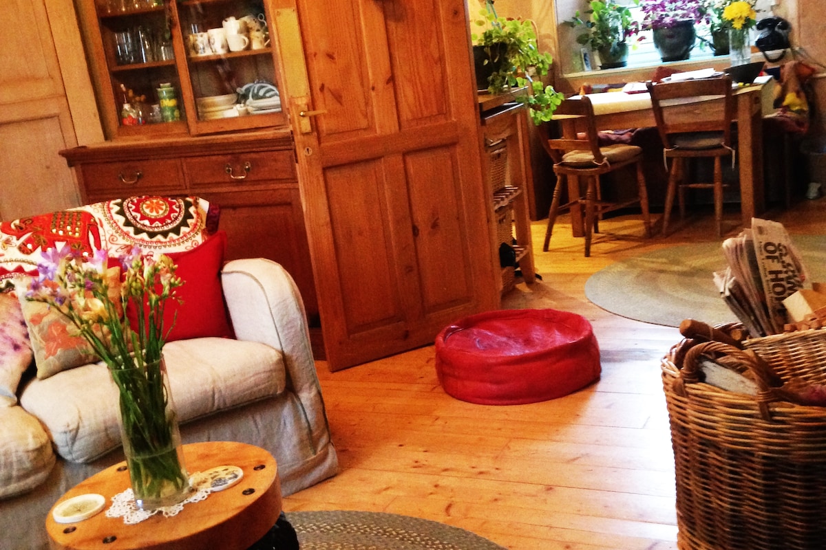 Welcome to our cosy, traditional country cottage with a modern twist, set within a wildlife friendly garden! Perfect for Families! Beautiful garden, large cottage with a main double bedroom and 2nd children's bedroom which leads from the main one. Sky TV/internet, log fire, dining room and a fully renovated modern Kitchen and Bathroom with walk in shower room. Quiet, private, comfortable, well loved and homely. Great for a weekend break, Families especially welcome! Home from home!