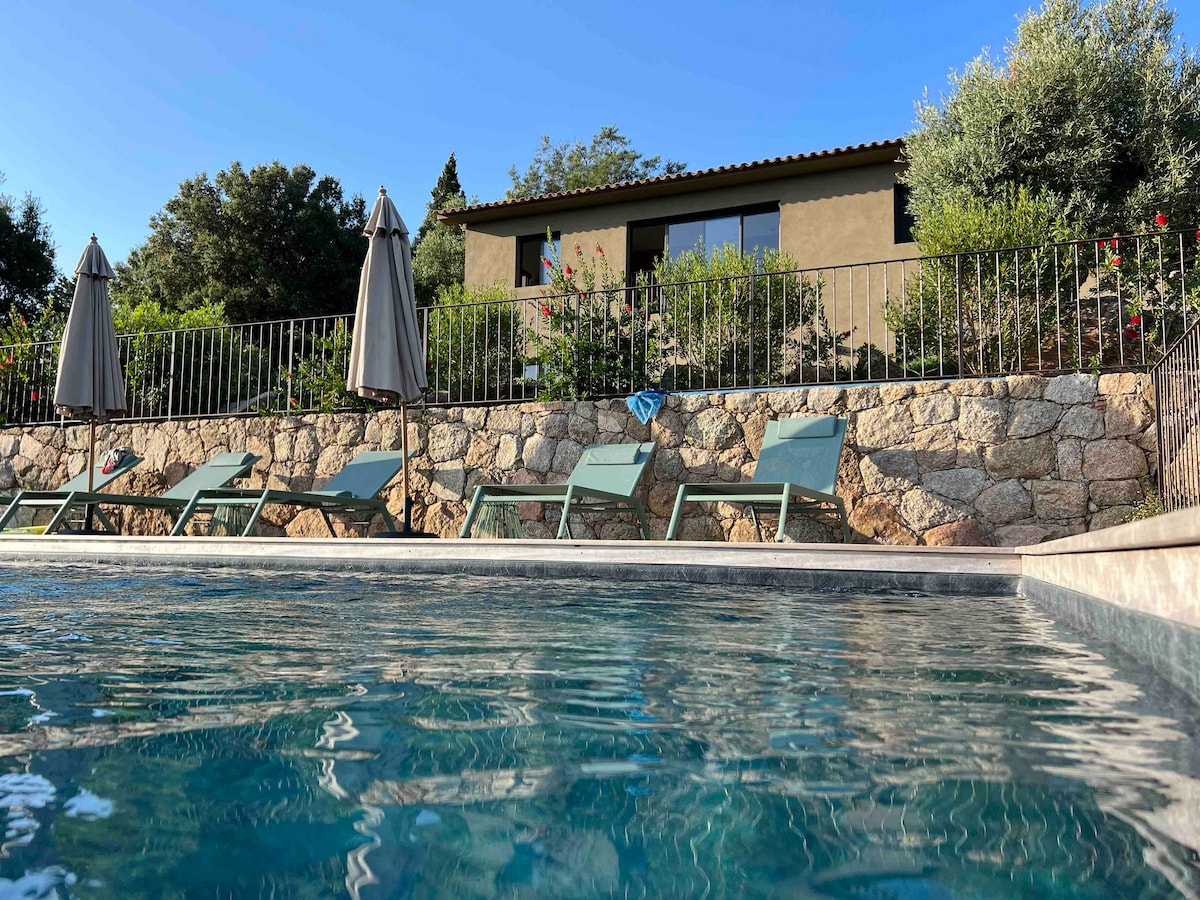 Nichée au cœur du maquis et à la croisée des côtes orientales et occidentales de la Corse, la villa bénéficie de vues panoramiques dégagées à l’infini. Vous pourrez profiter de magnifiques couchers de soleil le soir en prenant votre apéritif sur le canapé de la première terrasse ou prendre votre petit déjeuner le matin à l’ombre des oliviers. Une cuisine d’été avec un barbecue vous attend sur la 2ème terrasse autour de la piscine pour vos repas de midi ou bien en soirée….