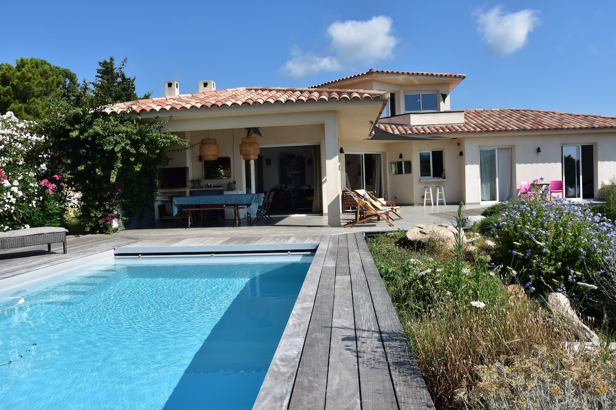 A 15mn des plus belles plages de Corse vous serez au calme au bord de la piscine chauffée privative entourée de vignes ,avec le golfe de Figari pour horizon. Parfaite en famille ou entre amis :l espace dans la maison permet d avoir une grande intimité. Amoureuse de ma region je me ferai un plaisir de vous aider à preparer au mieux votre séjour:degustations des vins au chaix,plages secrètes,itinéraires de balades.. Si vous arrivez à quitter la maison, Bonifacio et Porto-Vecchio sont a 15 mn..