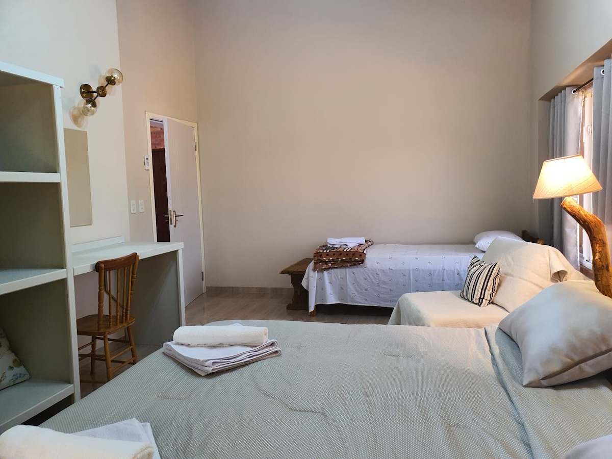 Habitación a 2 km del centro de la ciudad, con baño privado, acceso a piscina y quincho. Lugar tranquilo para relajarse y pasar un buen momento.