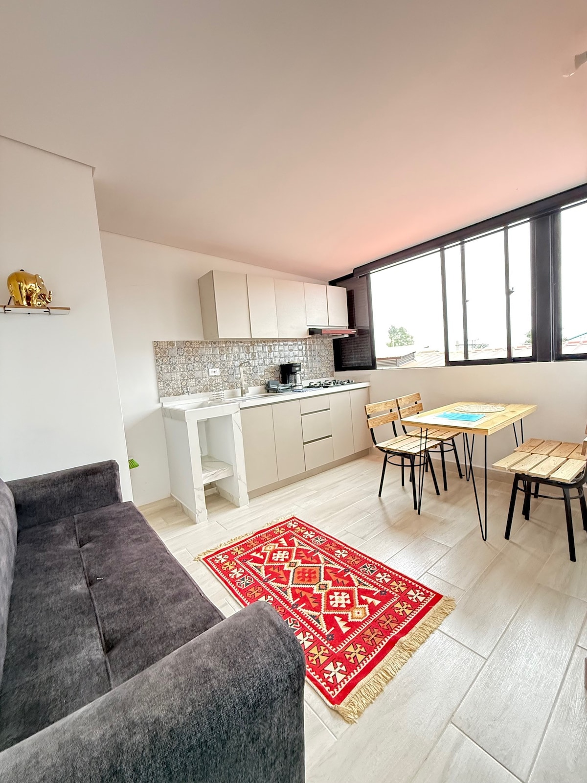 Thinking about your comfort, we designed a warm and well-lit space. It is a studio apartment with double accommodation and the possibility of an additional person on a sofa bed (extra cost). It has a fully equipped kitchen, a small laundry area, Wi-Fi and a comfortable desk so you can work. Ideal for a weekend or longer stays.