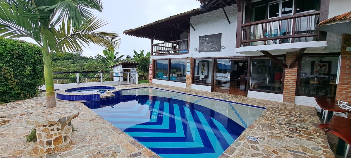 Estamos entre las montañas cafeteras con todas las comodidades , amaneceres y atardeceres espectaculares , aves , silencio , los mejores paisajes. Un jaccuzi al aire libre con el mejor paisaje y total privacidad. En la noche la fogata sera una gran compañera para disfrutar de unos masmelos o un buen vino. Los niños pueden jugar al aire libre sin peligro.
