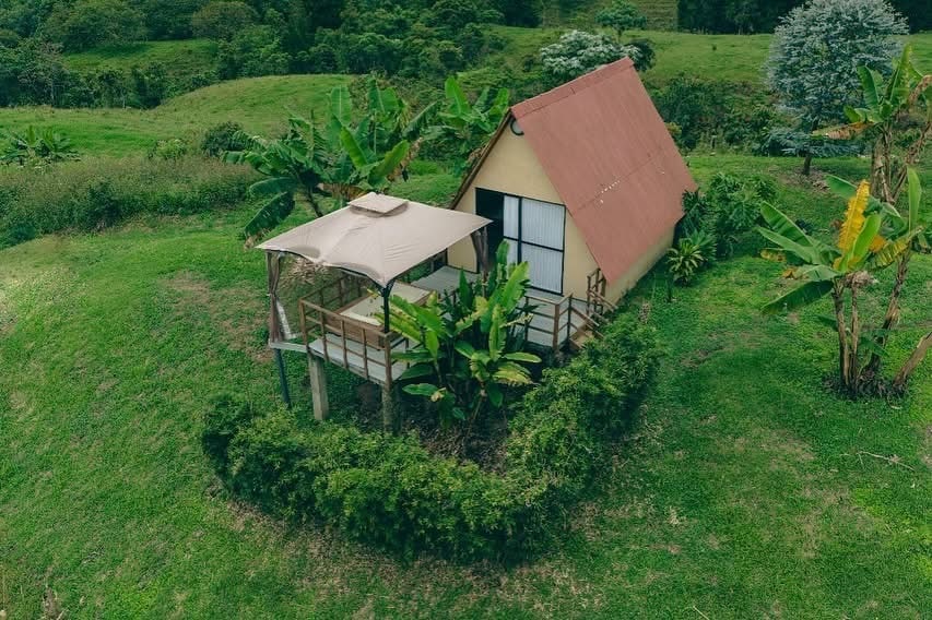 Estamos entre las montañas cafeteras con todas las comodidades , amaneceres y atardeceres espectaculares , aves , silencio , los mejores paisajes. Un jaccuzi al aire libre con el mejor paisaje y total privacidad. Si así lo quieren se hace inmersión en todo el proceso del café , para que salgan siendo expertos del cultivo y de la preparación . En la noche la fogata será una gran compañera para disfrutar de unos másmelos o un buen vino. Los niños pueden jugar al aire libre sin peligro.