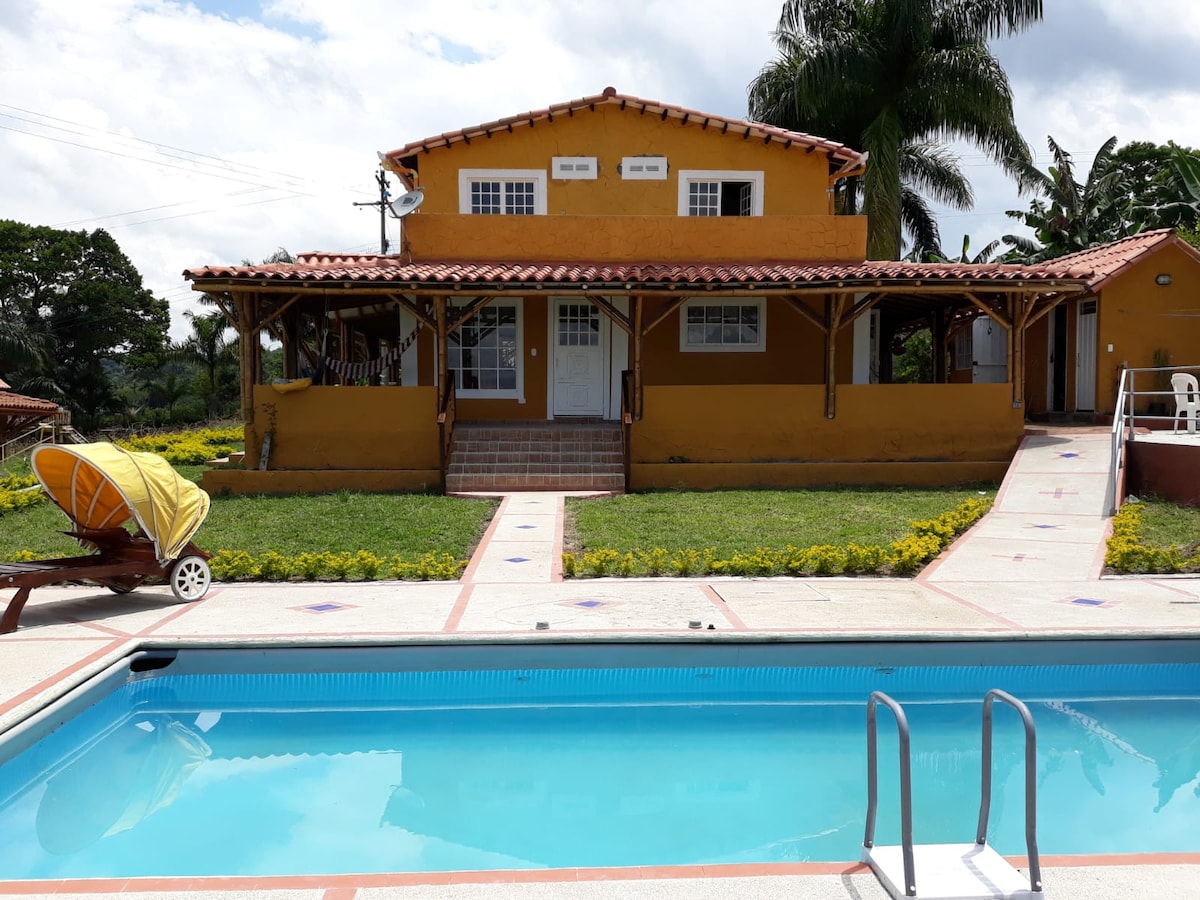 Hermosa finca con piscina, trampolín, billar, ping pong, billar pool, básquetbol, Juegos de mesa y mucho más. Aquí puedes relajarte, hacer deporte, y disfrutar de ver los animales. Agua Caliente y wifi. Una experiencia única cerca al pueblo de Filandia. Capacidad para 31 personas, promociones para reservar la finca entera para su familia.