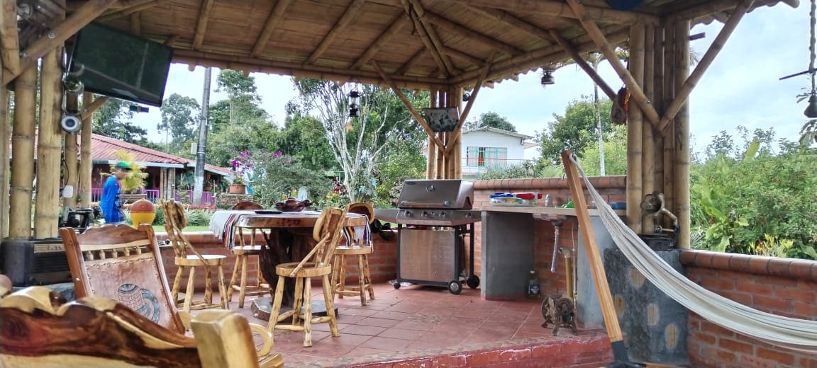 Traditional finca in the heart of the Coffee Region, just 5 minutes from Filandia. The finca stretches across the mountains, offering panoramic views that capture the essence of the coffee landscape. It is fully furnished and in excellent condition, with the capacity to accommodate up to 14 people. It features a jacuzzi, 3 bedrooms, 4 bathrooms, an open kitchen, a BBQ area, a fire pit area, and more than 4 balconies with mountain views. It includes Wi-Fi, hot water, and parking for 4 cars.