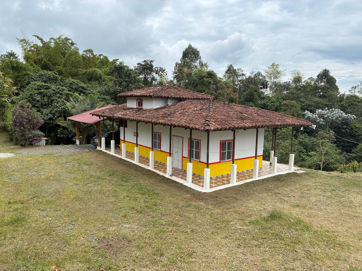 Hermosa casa de campo con toque de una finca de hace 30 años, rodeada de abundante naturaleza y equidistante a los principales sitios turísticos de la región: Salento 26Km Filandia 30 km Panaca 38Km Parque del café 26Km Mariposario 25Km Balsaje / Quimbaya 32 km Armenia 5 Km Circasia 4 km Con más de 300 mts de zona verde, camping y asados. Ideal para familias que quieran invertir tiempo juntos o personas que quieran trabajar en medio de mucha tranquilidad y excelente conexión a internet.