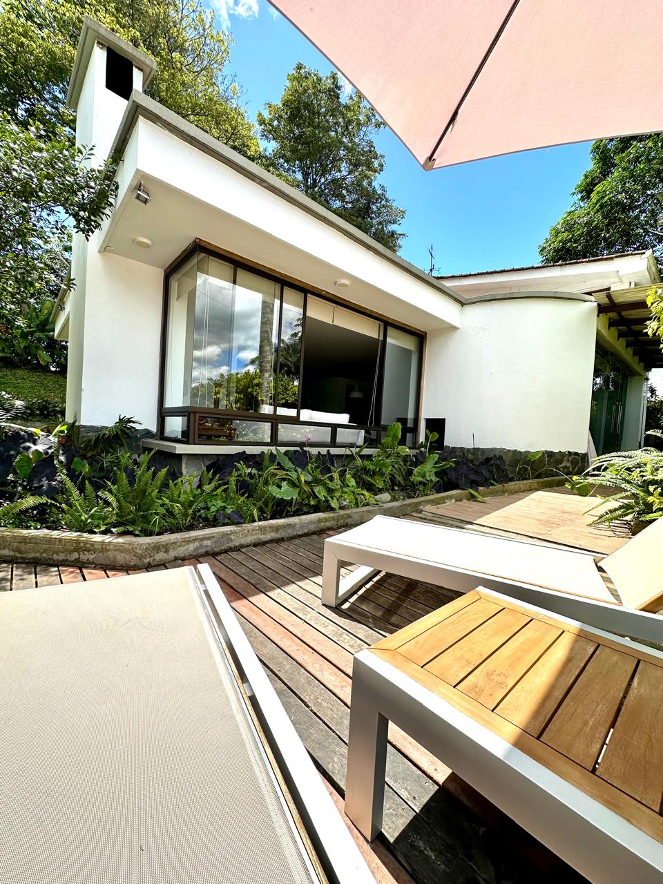 At Casa Chica Duarte, you’ll experience a getaway full of natural charm. Located just minutes from Quindío’s top tourist attractions, this industrial-style home is the perfect place for those seeking relaxation, comfort, and a deep connection with nature. Imagine moving from a cozy BBQ area to a social space with a fireplace, where the surrounding landscape takes center stage. Just ahead, a peaceful inner courtyard leads you to a bedroom designed for complete rest. We can’t wait to host you!