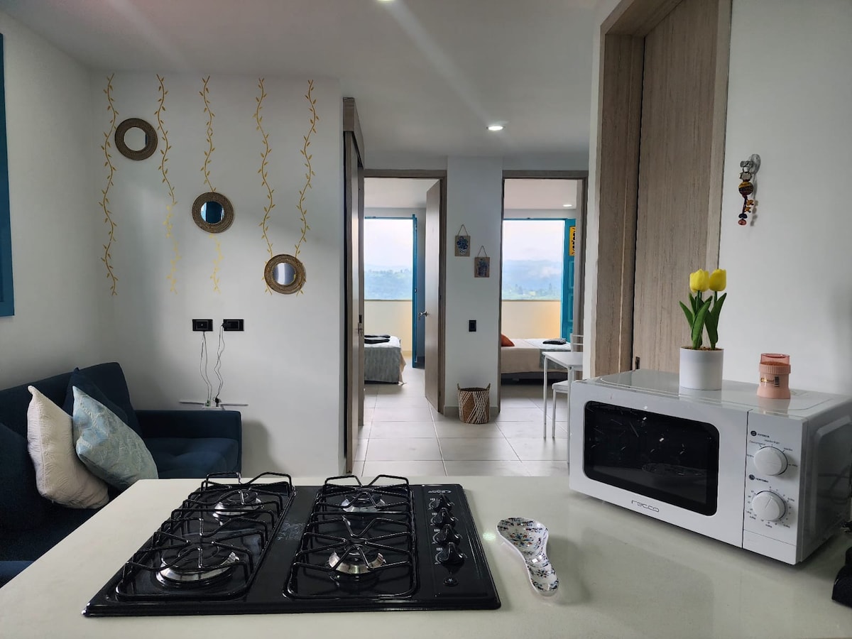 Ubicado en Circasia a solo 20 minutos de Salento y 25 min de Filandia, los pueblos más visitados del Quindío. nuestro apartamento es ideal para turismo y visitar los parques temáticos como el parque del Café, Panaca y las fincas cafeteras. Estarás a 10 minutos del norte de Armenia Perfecto para visitar pueblitos, respirar aire fresco y descansar del ruido de la ciudad. Al apartamento solo se puede acceder por escaleras, no cuenta con ascensor.