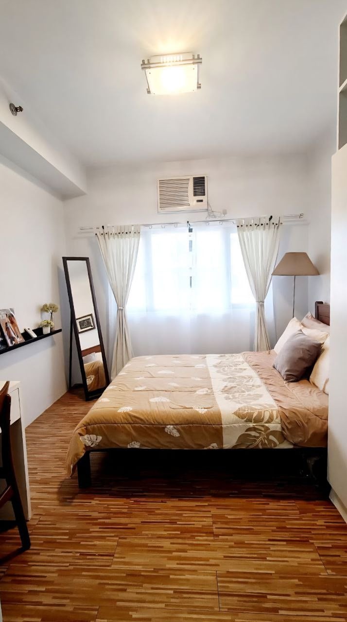 Cozy corner studio unit just 5 min away from NAIA Terminal 3 and Runway Manila. Enjoy a bright space with an airport view, comfy bed, smart TV with free Netflix, and fast WiFi. Guests also have free access to the pool, gym, and playground, making it perfect for layovers, quick getaways, or city stays.