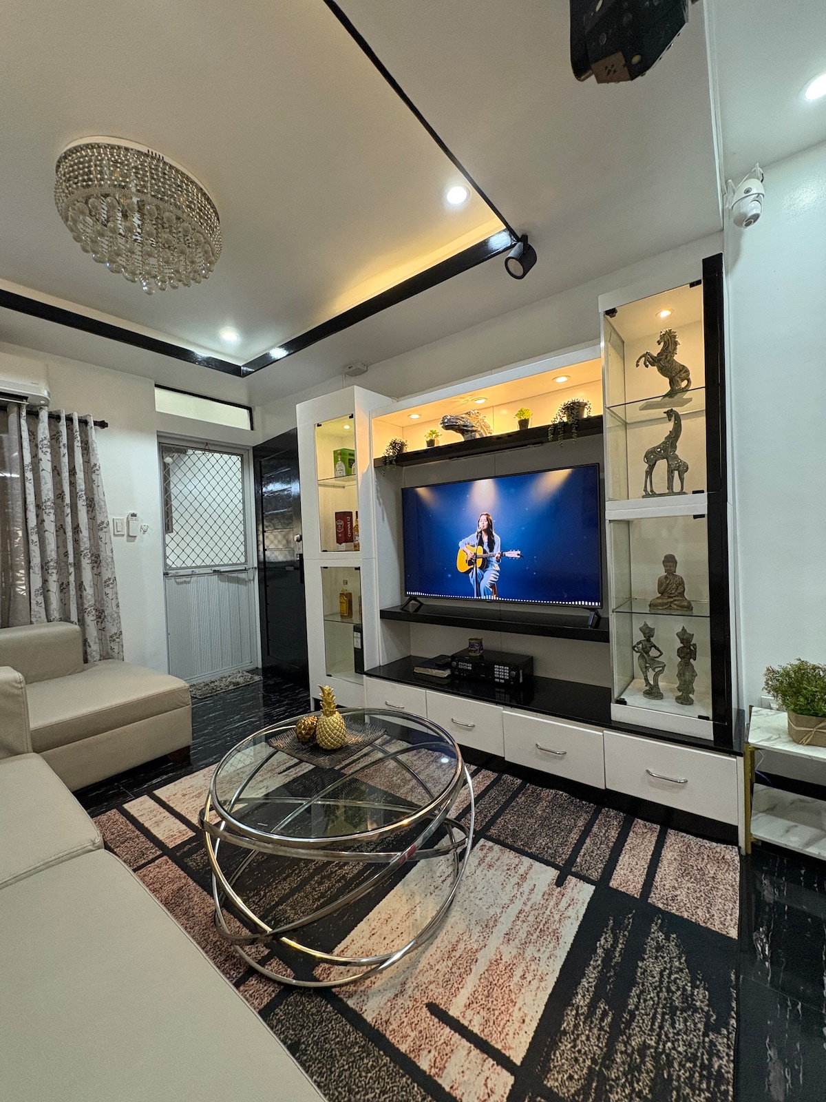 1 Bedroom Condominium in St. Veronica Villas, Quiet and Safe Neighborhood in Putatan Muntinlupa Pool can be reserved with the guard with no extra cost (first come first served on reservation) Limited to 1 hr use . 2 units Samsung UHD TVs (65, 55) with Netflix, Disney Plus,& Viu. You can do laundry, cook with complete kitchen, 2 HP AC, Full Living, Dining, Bedroom with Full Double Bed, Complete Toilet and Bath with Shower Heater Fast Internet 200 MBPS No Cleaning Fee for short stay self Check In