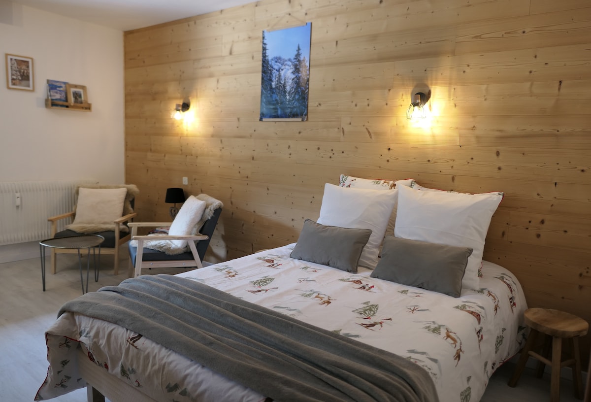 Evalué gîte de tourisme 4* en 2024 **** Ambiance glamour face à la montagne : suite parentale, sauna, baignoire 2 personnes, immense douche à l'italienne... En rez-de-jardin d'un chalet à 15mn du domaine skiable de Manigod (liaison skiable La Clusaz), et 25mn d'Annecy. Le propriétaire vit dans le chalet au dessus mais le gîte est totalement indépendant et sans espaces communs Parking gratuit 2 voitures. Possibilité option ménage à régler sur place : 30€.