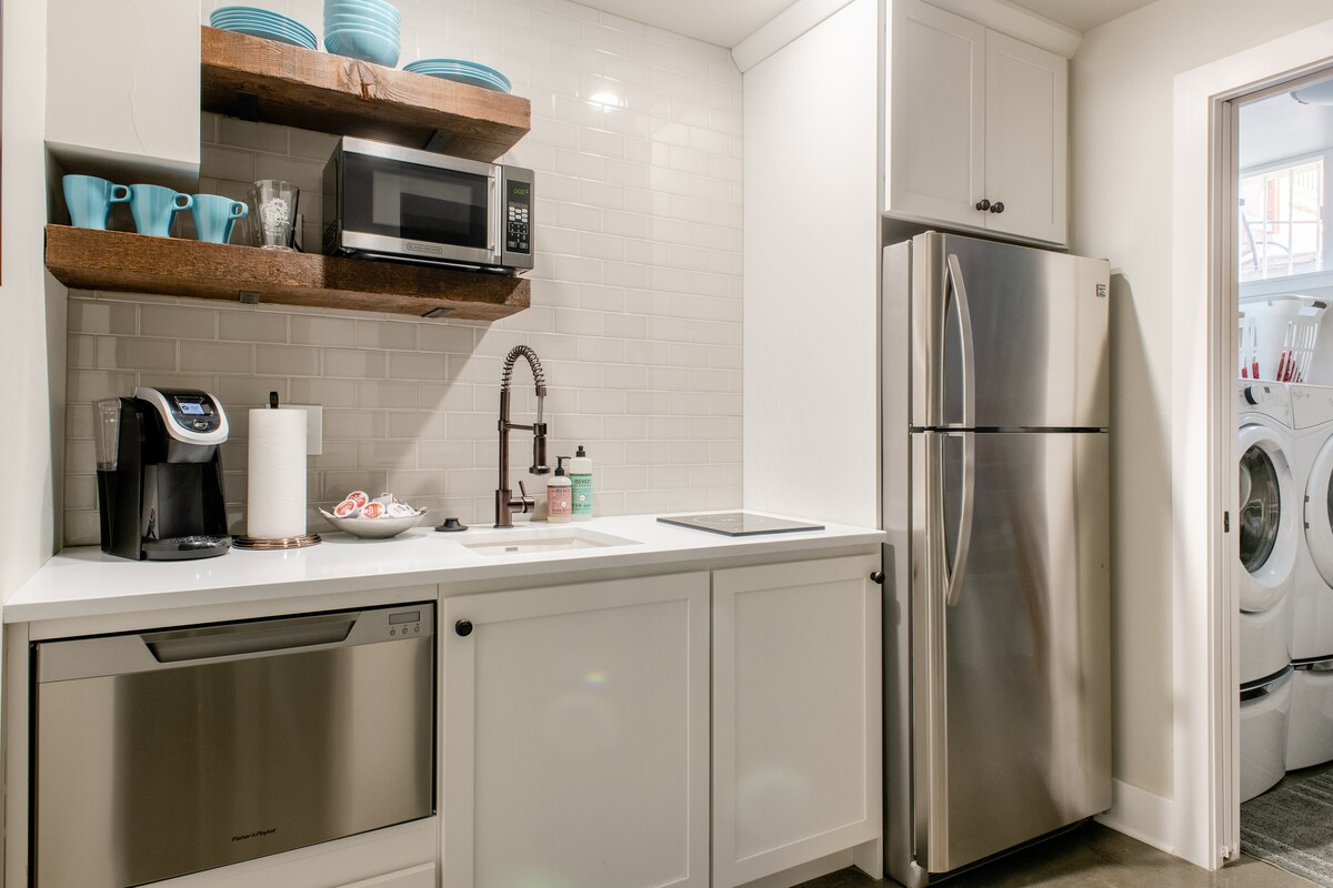 NO CLEANING FEE! Start your day in the big tiled shower; then catch up on emails at the handy work desk. This home reveals careful planning for two, showcased by a designer kitchenette, a washer/dryer, a smart TV with cable, a desk/workspace, and super fast Wifi. You'll have your own private entrance to this fully remodeled apartment. And we're close to everything: a Whole Foods brand grocery store right around the corner, restaurants, bars, and Cheesman Park are close. Free street parking.