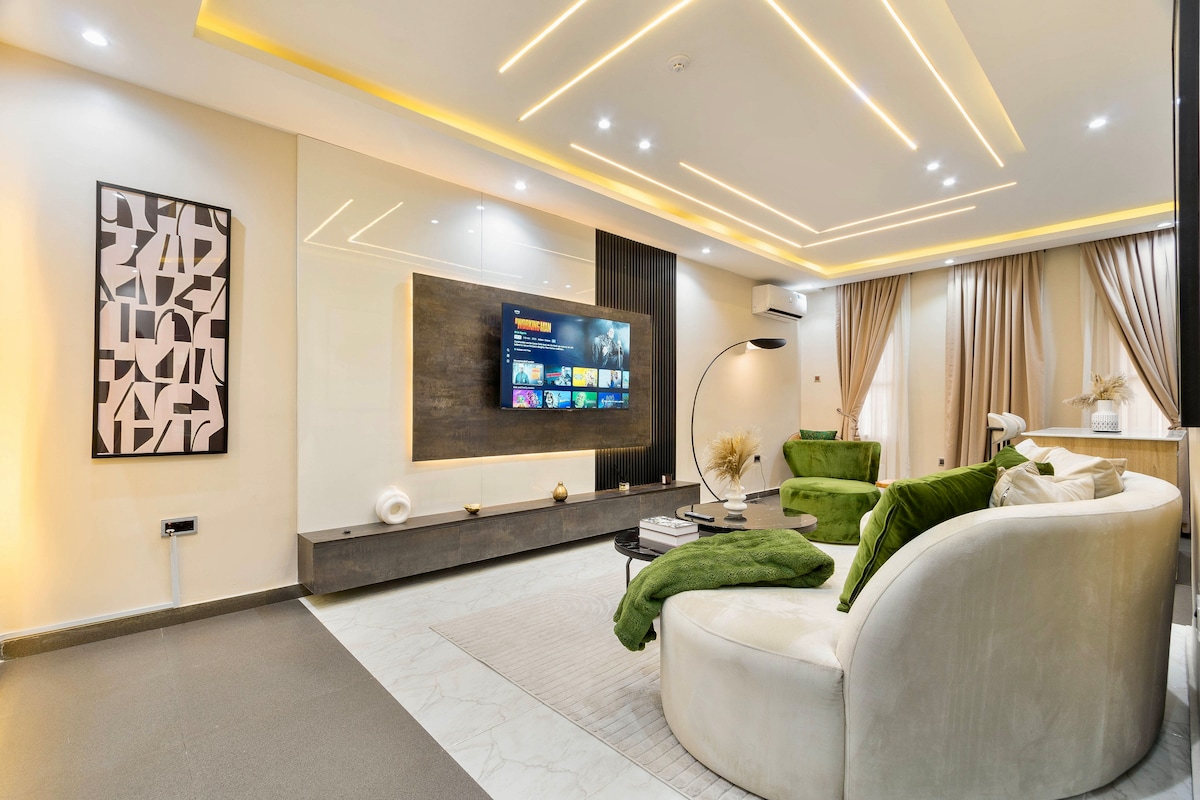 Stay in the most stunning and in this modern, stunning 2bed apartment in a gated and heavily secured estate in Lekki Phase 1. Perfectly located near supermarkets, restaurants, cinemas & cafes .It offers comfort,and style in the most peaceful & best location .Enjoy 24/7 power, fastWi-Fi, clean water, Security and cleaning services .Aesthetic lights make it ideal for pictures . Every detail is designed to help you relax, unwind, and feel at home while staying close to everything important
