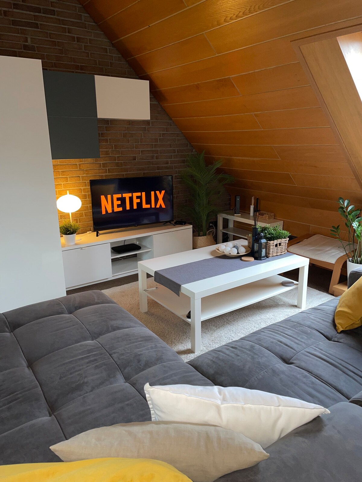 Bright, cozy loft (80sqm) for max. 4 people. Open-plan kitchen, bathroom, separate dressing room, amazing, large roof terrace. Pets are allowed and will be charged with 20,--€ per stay. Excellente central location in downtown Düsseldorf-Oberkassel, yet very quiet. Tram, Supermarket, Bakery, and lot of restaurants are in a small walking distance, 2-5 min! One-site parking in internal courtyard for free!