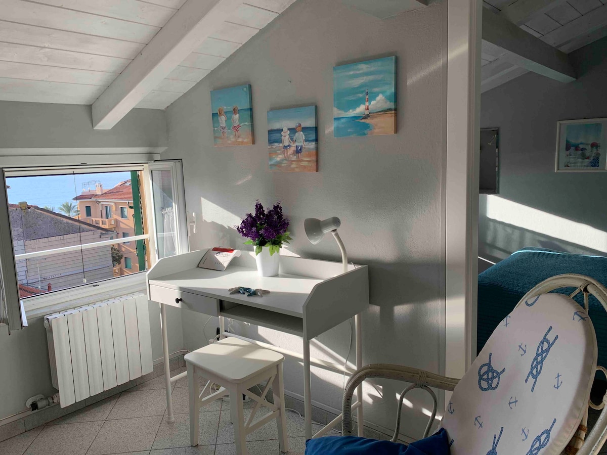 New studio apartment close to the centre of Finale Marina, with a terrific sea view. Wonderful furnitures, completed in July 2016, really close to beaches and the center of Finale. Last floor with elevator directly from the street. For Bikers: 500 meters from a safe bikebox (Bike box Finale). Suitable for max 3 people, air conditioning, it is a real jewel. Wi-fi included! CIN : IT009029C2K2R7CFES
