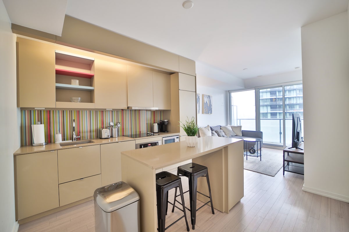 Experience luxury in the heart of downtown Toronto. This upscale apartment is steps from main public transportation, fine dining, Scotia Arena, Ripley's Aquarium, CN Tower, Lake Ontario, and a lush park. Explore the vibrant entertainment district and bustling markets nearby. Perfectly blending elegance with convenience, this retreat offers a comfortable, stylish stay. Ideal for business and leisure travelers seeking to experience the best of Toronto's downtown.