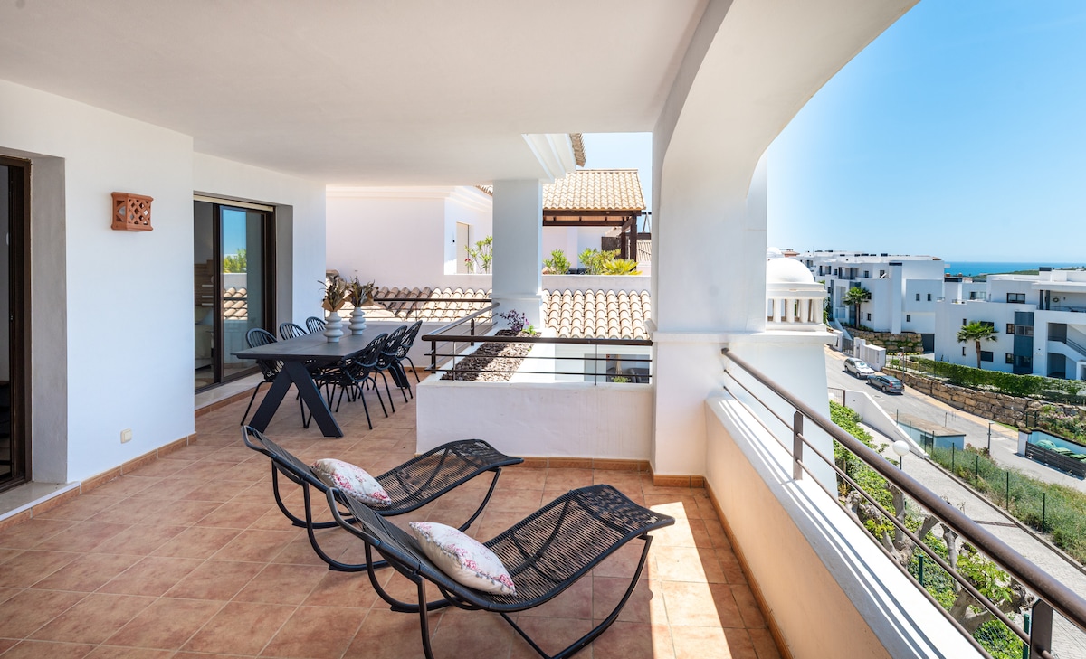 This stunning three-bedroom penthouse apartment situated in Casares Costa offers an ideal retreat for families, couples, and golf enthusiasts. The property features free subterranean parking with a private elevator, ensuring convenience and security for guests. The highlight of the apartment is the large terrace, where you can soak up the sun or dine alfresco.