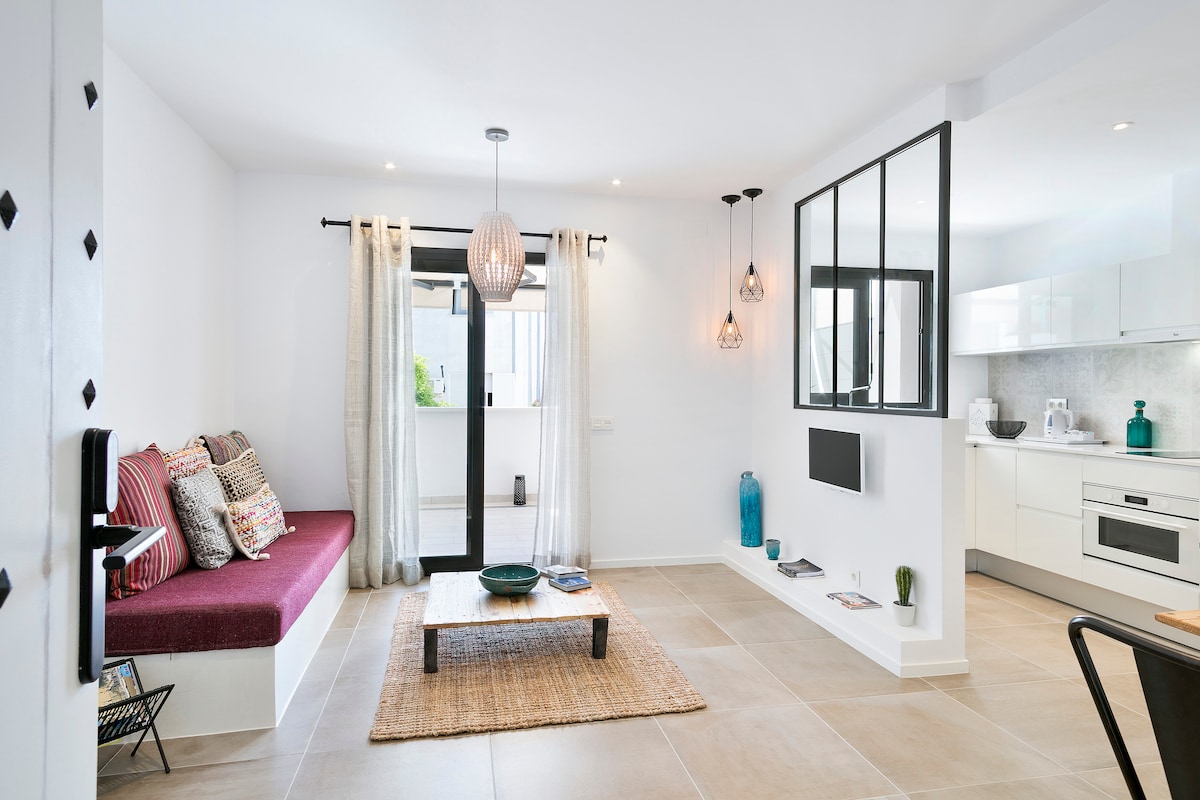Our lovely apartment is located in the heart of Sitges, facing to the main street in town. There's one bedroom, one living-room with full equipped kitchen and one bathroom. High speed WiFi connection. The location is really unbeatable, 1 min walk to the beach, 5 min walk to the train station and all you can need is really close, supermarkets, bars, restaurants, shops... There's a big balcony with street views. You'll love it!