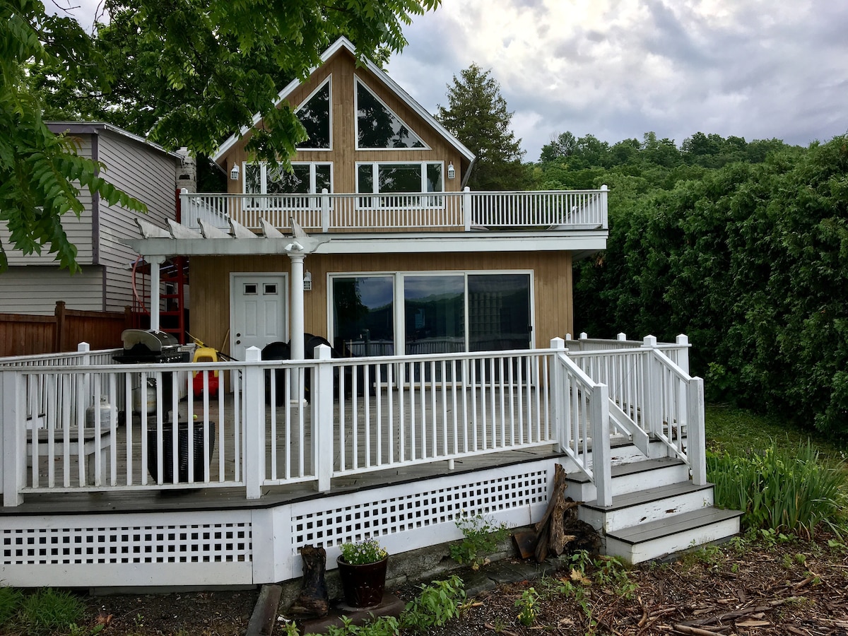 The Rhodie House is located on the West shore of Cayuga Lake. It is close to Ithaca, wineries and parks. Cornell University can be seen from the dock. The lake frontage includes 80 ft. of gravel beach as well as a wooden dock. The cottage has a wrap around deck with great lake views. There are over 20 rhododendron bushes on the property. A smart TV allows streaming your favorite shows.