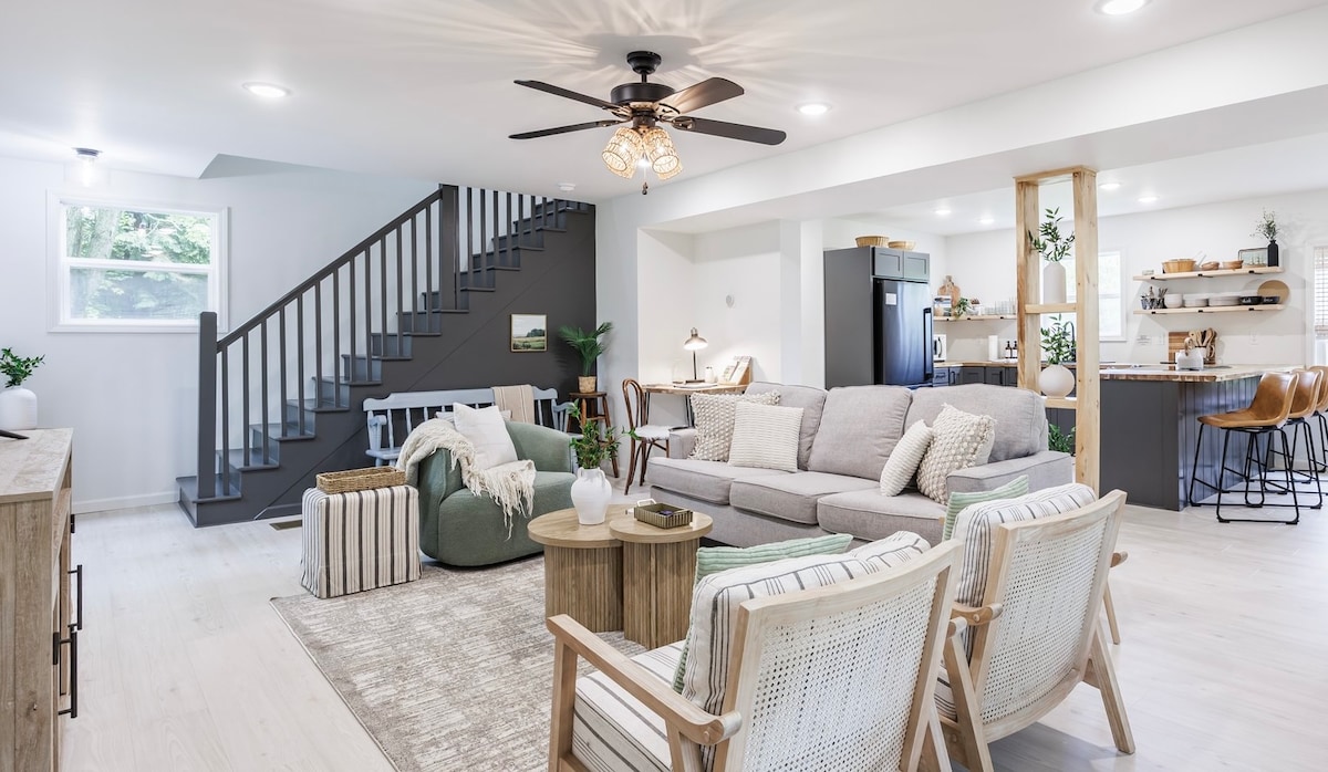 This cozy, updated two bedroom apartment mixes midcentury modern and vintage furniture with an organic, upstate NY vibe. The stylish first floor apartment of a classic Ithaca home, nestled into the highly walkable Fall Creek neighborhood. Just a few short blocks from Ithaca Falls, with easy access to Cornell, Ithaca College, and downtown. We took inspiration from boutique hotels when designing this space, with recently renovated bathroom and kitchen, new appliances, smart TV and luxury linens.