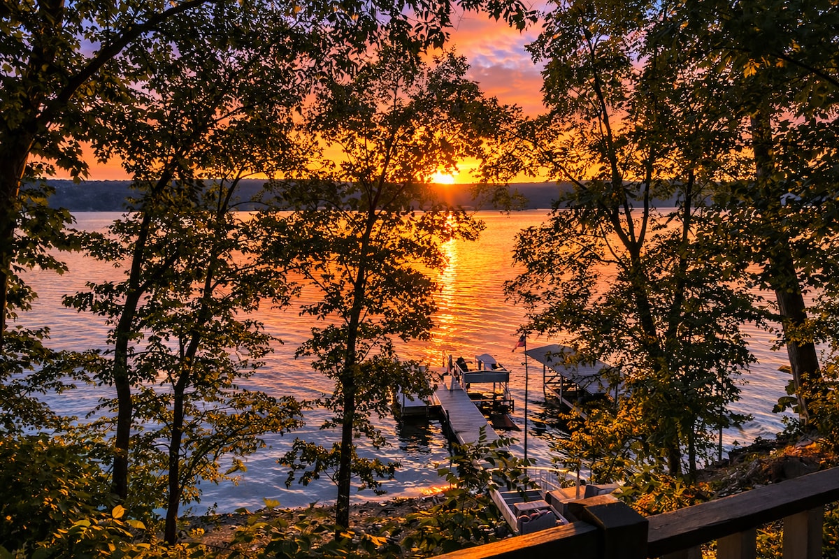 塞尼卡湖日落海滩 5卧室度假屋,带泳池和码头