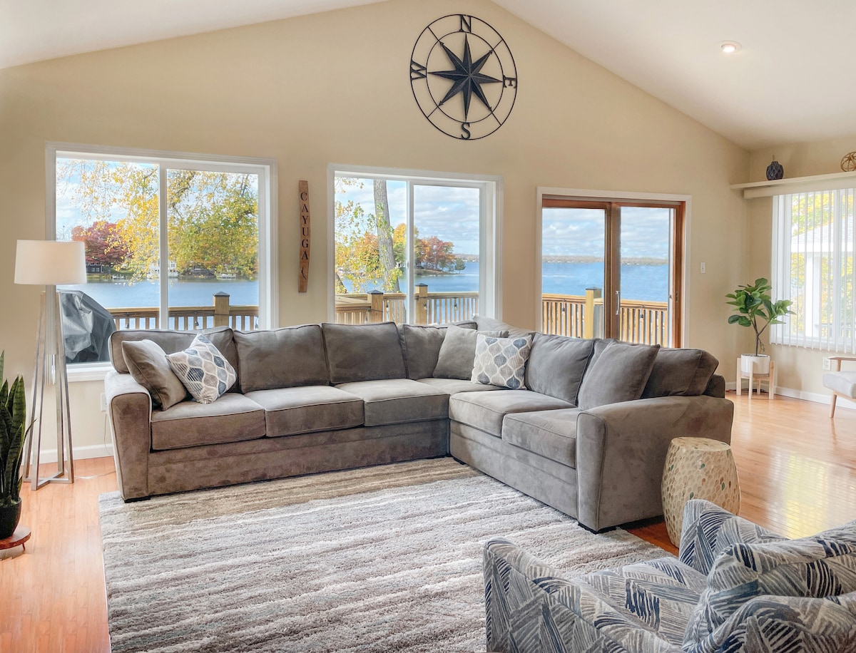 Newly built luxury accommodations on Cayuga Lake in the heart of the FLX. 4 BR (5 Beds). 3 full baths. Laundry. Wifi. Central Air. 75" Smart TV. High-end finishes. Nearby amenities include: Cayuga Wine Trail Cayuga Lake State Park Women's Rights National Historic Park del Lago Casino & Resort Waterloo Premium Shopping Outlets Taughannock Falls State Park Ithaca (Cornell University & Ithaca College) Watkins Glen State Park Family built, owned, and managed since 2022. Be our guest!