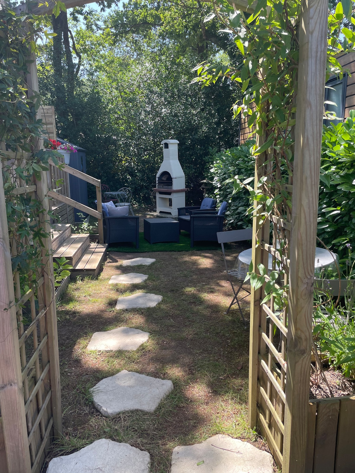 Imaginés, conçus et décorés par nos soins, les bungalows, autrement surnommés les "Twins Houses", sont des mini-copies de notre maison en bois. Dessinés à l'identique et orientés Sud, les bungalows sont totalement indépendants entre eux et isolés de la maison. Chacun dispose de son propre jardin avec terrasse et de toutes les commodités pour des vacances ou week-end confortables à deux (possibilité d'installer un lit parapluie pour 1 bébé ou enfant en bas âge).