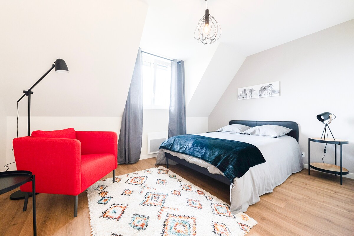 Welcome to Kastel Roc'H, a charming coliving just minutes from the centre of Plougastel-Daoulas. 🌊🍓 We offer a private room with every comfort, in a peaceful and friendly setting, ideal for living in peace, respect and sharing. You'll have access to equipped communal areas: kitchen, living room, dining area and office so you can telework with peace of mind. ✔️ Parking on site 🛏️ Bed made up on arrival 🚿 Towels provided ❄️ Individual fridge and freezer