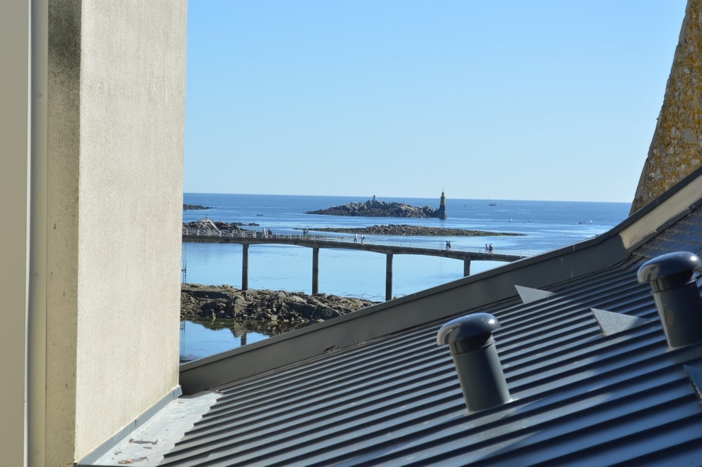 Idéalement situé en plein coeur du centre historique de la cité corsaire, ce studio neuf d'environ 40 m2, avec vue directe sur la mer, soigneusement décoré et équipé, saura satisfaire les plus exigeants des voyageurs. Cette situation centrale permet d'accéder en quelques minutes à pied à l'ensemble des centres d'intérêts et animations qu'offre la ville de ROSCOFF (vieux port, embarcadère île de Batz, cinéma, commerces, restaurants, thalasso, plage.