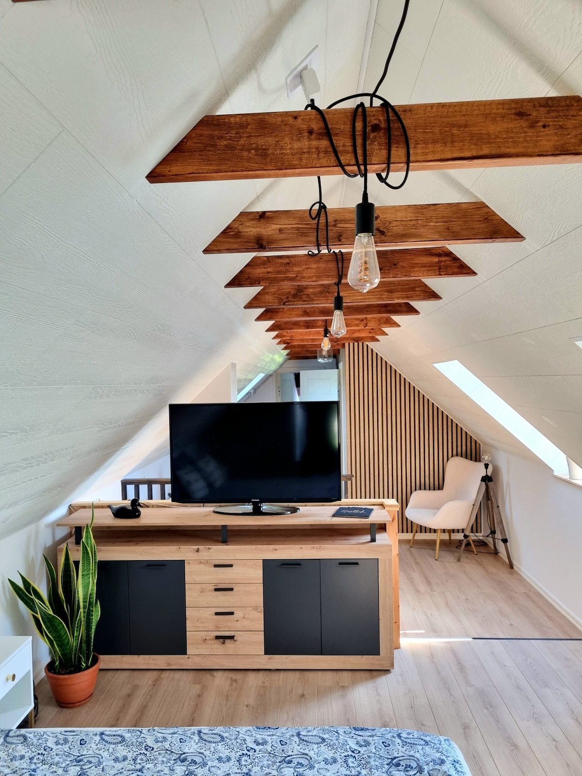 Vackert lantligt läge strax utanför Röstånga. Funktionellt och fräscht. Du har två plan på ca 25 kvm byggt i gaveln på en lada helt för dig själv. Sovrummet ligger en trappa upp, trappan har dock ingen ledstång. Köket har två kokplattor, köksfläkt, mikro, kaffebryggare, vattenkokare och kyl med frys. Ingen ugn. Fullt utrustat med köksattiraljer. Bäddsoffan står på bottenvåningen och är tyvärr inte så bekväm att sova i. OBS handdukar, lakan och städning ingår!