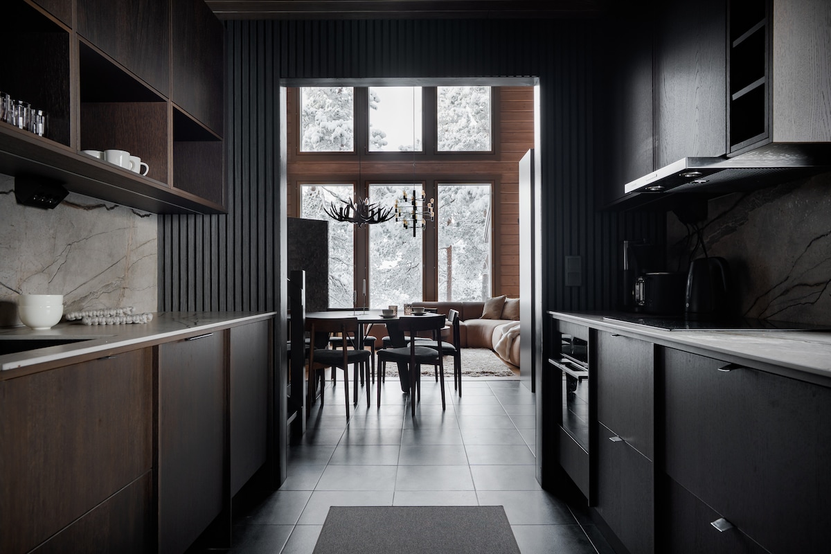 Chalet Utsun Kinnas is located at the top of Levi, in Utsuvaara. It’s surrounded by spectacular nature and most iconic views. This modern yet cozy chalet has been renovated and newly furnished in the beginning of 2026. The chalet includes two lift passes and final cleaning. The nearest lift is only 450m away. A 110 m² log semi-detached house is furnished with high-quality materials is fully equipped for six adults and two children.