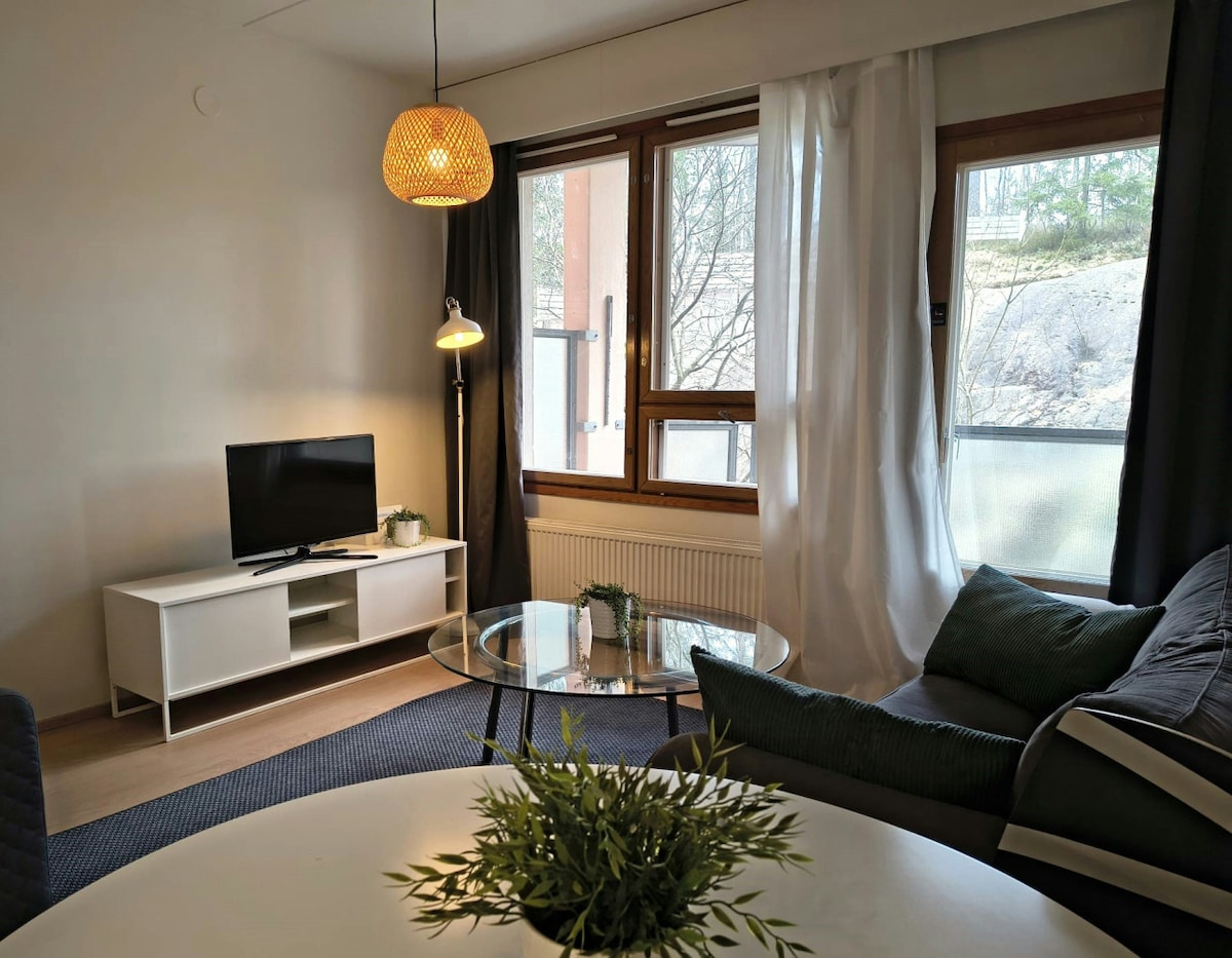 在埃兰海滩(Eiran Beach)旁的豪华公寓里,您可以享受自己的桑拿浴室和露台,欣赏迷人的景色。这栋现代时尚的住宅位于美丽的埃拉(Eira)地区,邻近众多咖啡馆、餐馆和酒吧。乘坐电车前往赫尔辛基市中心仅需 10 分钟。 公寓配有一台 55 英寸电视,可收看 Netflix 和 IPTV,并提供高速无线网络连接,为您提供舒适的住宿环境。 这里是放松身心、享受城市生活的理想场所!