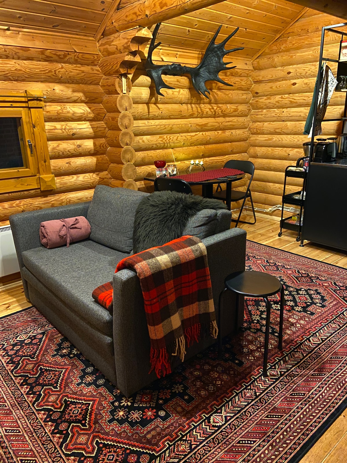 Fully equipped log cottage in Nuorgam, the northernmost village in Finland. Karetörmä has breathtaking views of River Teno. Enjoy the Northern lights show relaxing in the jacuzzi. You have privacy, but the grocery store is just 5 mins away. Enjoy the winter activities in the Arctic Tundra: cross country skiing, snowmobiling, ice fishing, husky- and reindeer sledding. Make trips to Norway and see the Arctic Ocean. In the summer season, you can go fishing, mountain biking, and hiking.