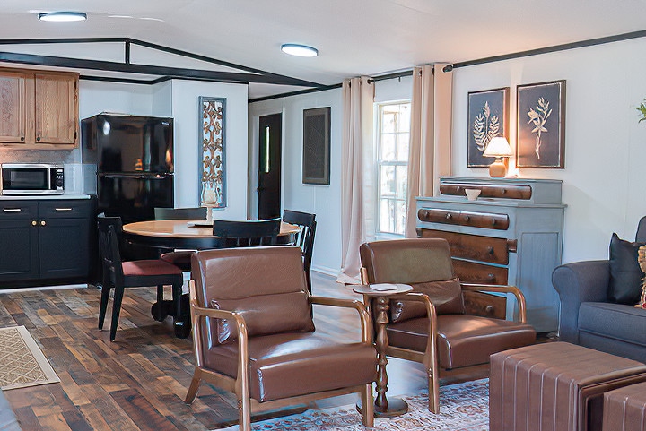 Nestled among towering trees, this beautifully remodeled 3-bedroom, 2-bath retreat redefines the mobile home experience—you’ll never believe you’re in one. Every detail has been updated with comfort and style in mind, creating a bright, welcoming space that feels more like a boutique cabin than a manufactured home. With a tranquil, woodland setting and all the essentials you need for a seamless stay. This is the perfect escape for anyone seeking comfort, privacy, and a touch of nature.
