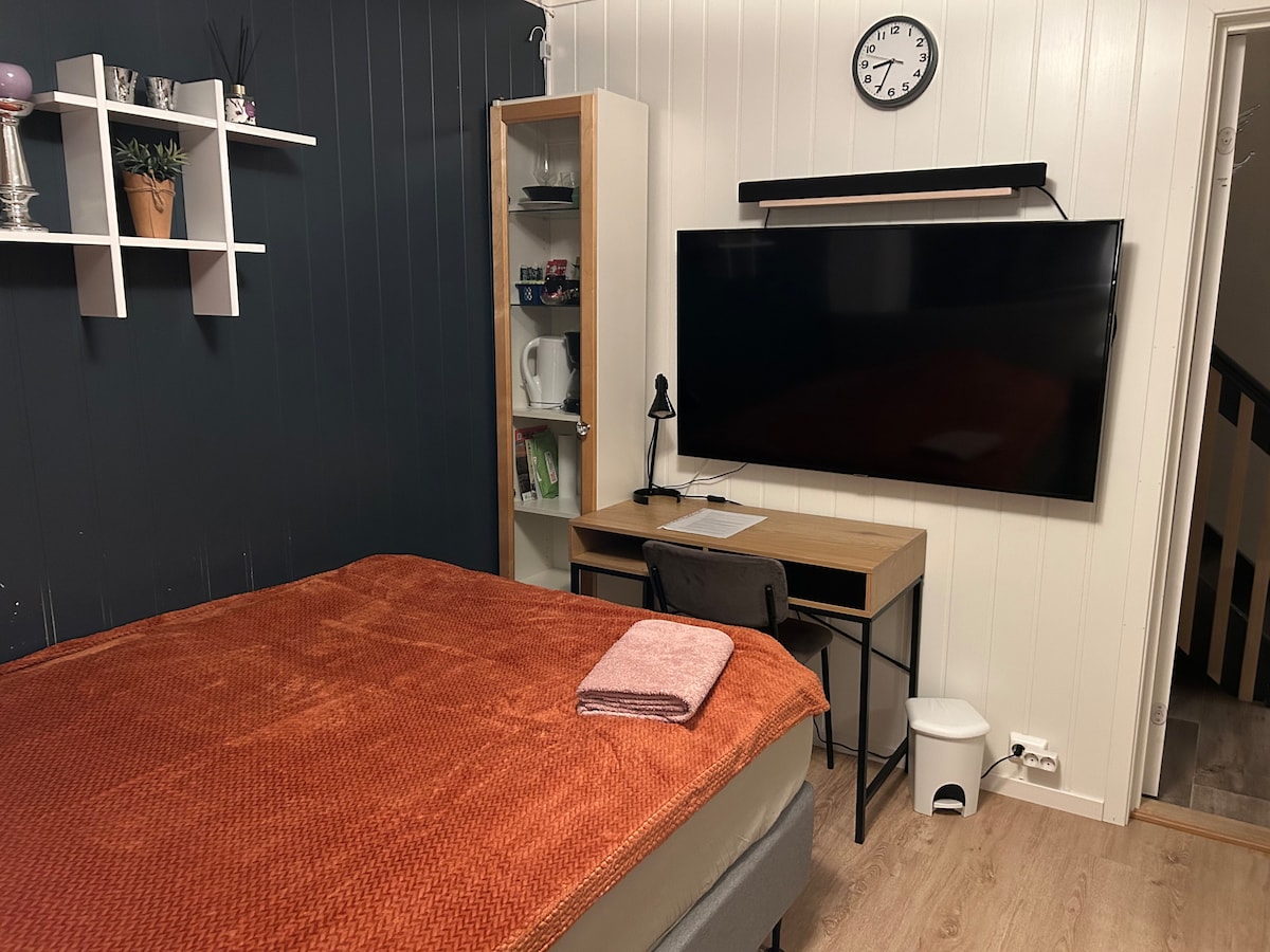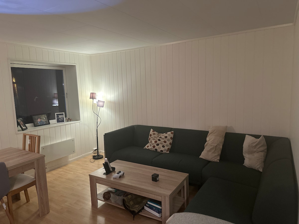 .Cozy, modernly furnished apartment. In a quiet location, just a 5-minute walk from the Hurtigrute speedboat or bus. The living and bedroom have a new double loft bed. Additionally a 90s single bed. With a 42-inch smart TV with internet, you can survive even bad weather days. The kitchen has a dishwasher, microwave, stove and freezer/fridge Kettle. and coffee machine. Tea and spices are available. The bathroom has a large shower (for 2 people). Underfloor heating and a large illuminated mirror.