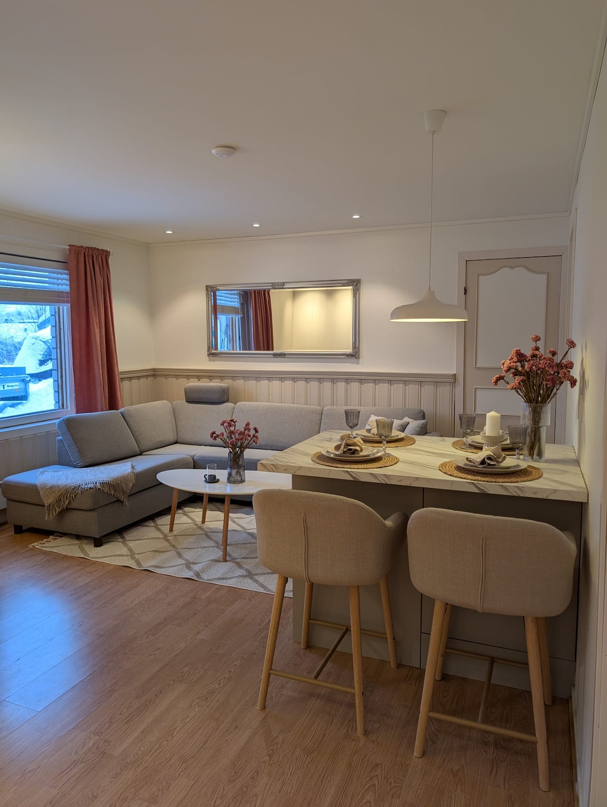 Føl dere som hjemme i min hjemmekoselige leilighet i en eldre bolig innredet med arvet og nytt. Vedfyring om vinteren for ekstra oppvarming og kos. Dette er et perfekt sted for en pause under reisen. Har du et tidlig morgenfly, er flyet innstilt eller fjellovergangen er stengt? 500 m fra lufthavn, 150 m til busstopp og ca 1 km til båthavn. Enkle varer til matlaging finnes på kjøkkenet, samt snacks og drikke. Innsjekk med nøkkelboks. Gratis parkering. Flere enn 6 gjester? Ta kontakt.
