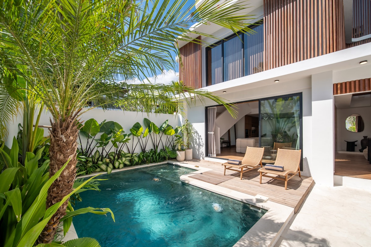 Escape to our Brand New 1 BR villa with private pool in superb location in the heart of Canggu, This is the perfect villa for couples or solo travelers who loves to explore famous spot in Canggu. Just 3-5 walk to great Restaurant, Shop, Gym, CoWorking, Pilates, cafes & Bars. It is just few minutes from famous beaches like Nelayan, Batu Bolong, Canggu Beach, This villa features a luxurious king bed, ensuite bathroom, kitchen, pool, living room, and open living spaces to relax by the private pool