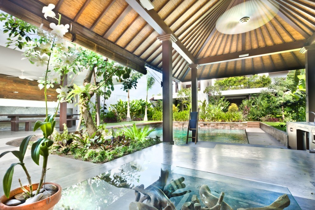 Villa Varuna features five fully air conditioned en-suite bedrooms, four huge bedrooms ( 2 king, one queen, two twin beds (1,4m each) four huge bathrooms (two with additional baths) and additionnal wooden guest bungalow with queen size bed, shower, toilets and washbasin . Each bedroom also hides a safe deposit box. Situated in a quiet lane, walking distance to the popular Double 6 Beach, the house is a short stroll from the vibrant boutiques and restaurants of Seminyak.