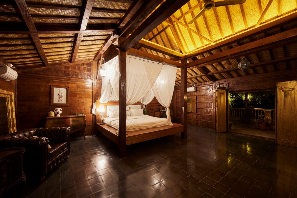 Authentic Balinese wooden house on top of a brick castle. A rare find in Bali, offering spaciousness, charm, & privacy. Lush gardens minutes from Berawa Surf Beach, Finns & Atlas Clubs & Restaurants. King size bedroom/lounge with ensuite, balcony, and TV, perfect for work or leisure. Downstairs, a shared kitchen, dining, and lounge area. Sprawling gardens over 500 sqm and a 10-meter pool. Other Spaces airbnb.ca/h/Joglo1 airbnb.ca/h/joglo2 airbnb.ca/h/duajoglos airbnb.ca/h/wholevilla