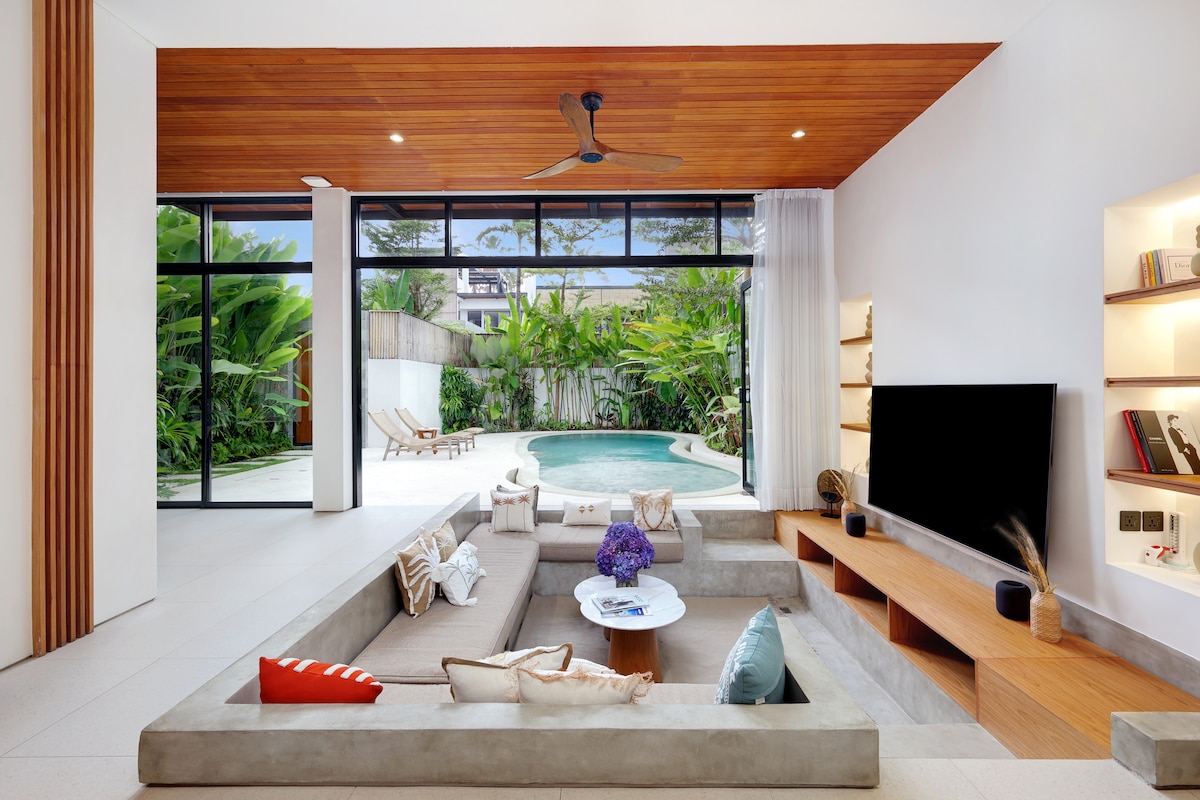 Escape to our stunning villa just 2km from the beach, with cafés and shops nearby. Enjoy a private pool, outdoor cinema, piano, VR games, PS5, Netflix, karaoke, and TVs in every room. Cook in the full kitchen or grill by the BBQ. Blending Balinese charm and modern comfort, this homey retreat offers everything for a peaceful, fun-filled family getaway. Book our Intro Promo for an unforgettable stay!