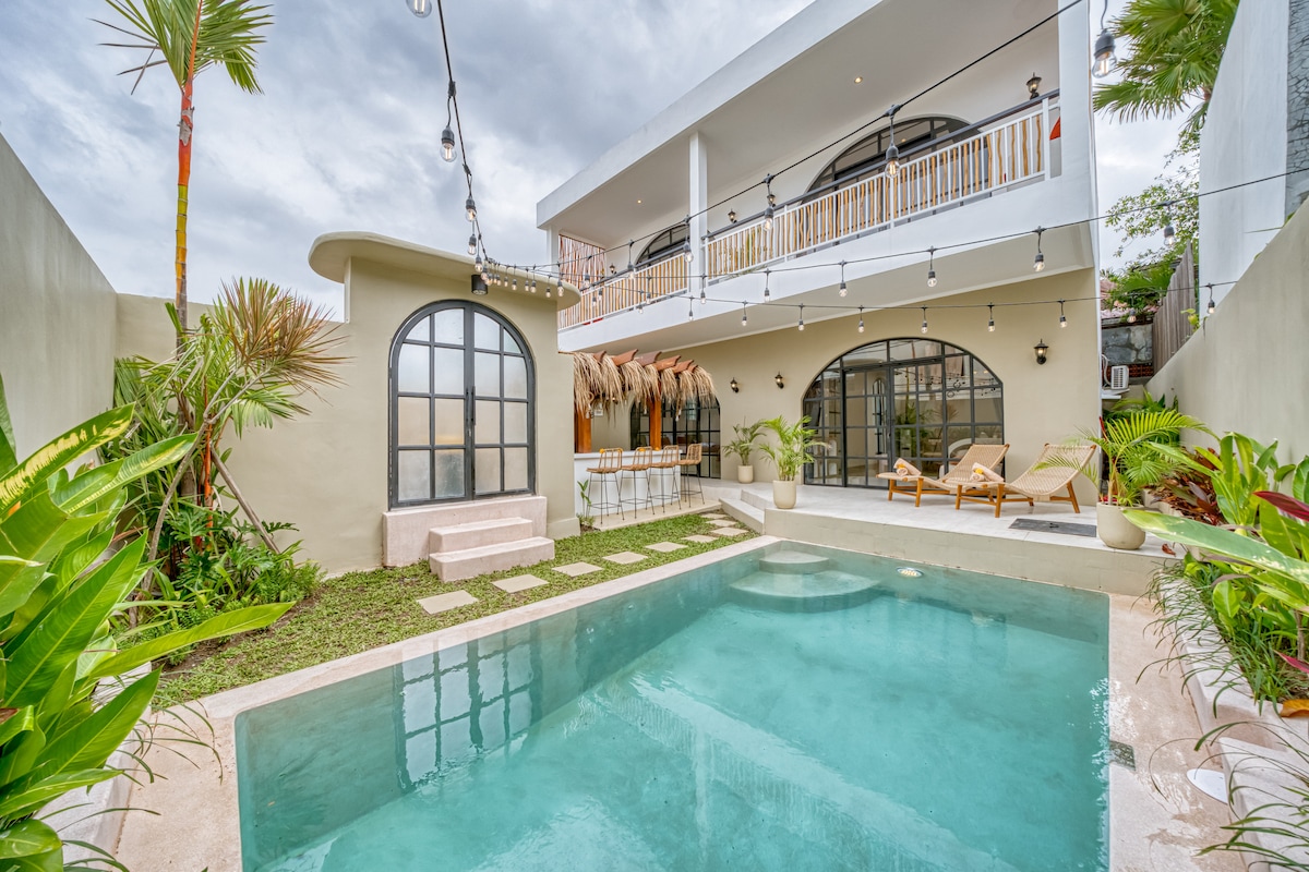 Welcome to one of Canggu's most unique penthouses, located directly in front of Berawa Beach, combining stunning ocean views, modern design, and creative spaces in Bali's vibrant neighborhood Wake up to the sound of waves and enjoy breathtaking sunsets from your private rooftop pool Designed for entrepreneurs, creators and digital nomads who want to enjoy Bali while staying inspired Steps from Finns Beach Club, beach, cafes, and restaurants, the perfect place to experience the Bali lifestyle