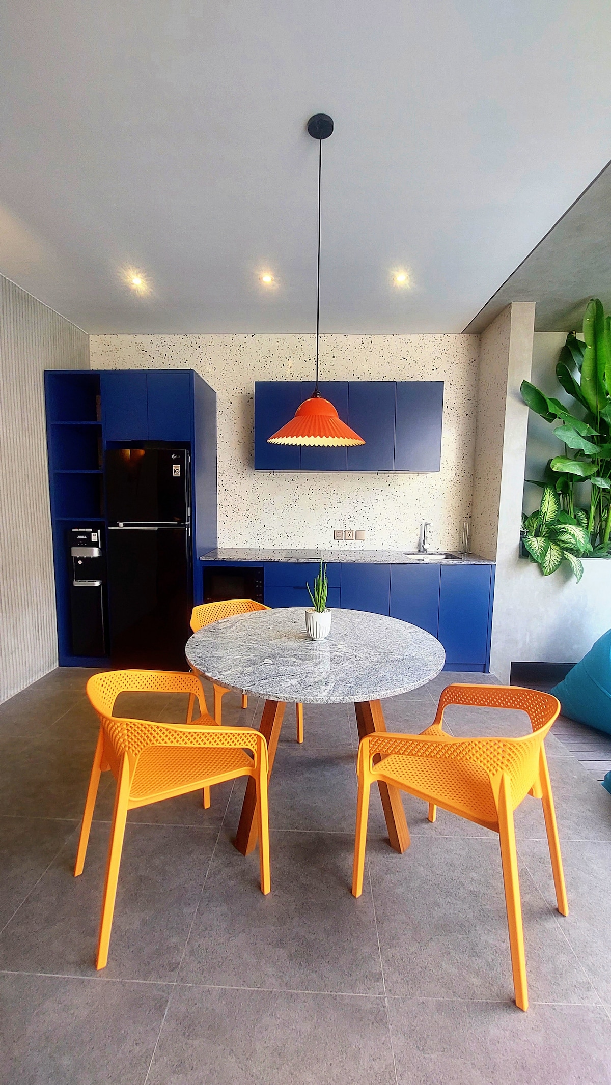 Enjoy your romantic private times in a luxurious complex, close to a fine selection of world-class cafes, restaurants and beach clubs. But perfectly hidden in a serene and quiet villa neighbourhood. This villa features an ensuite bathtub and offers a perfect dip-in pool. Enjoy your floating breakfast under the wood panels with sunlight gently pouring through. Chillax on the bean bag or sun loungers at your choice while soaking up the view of the garden.