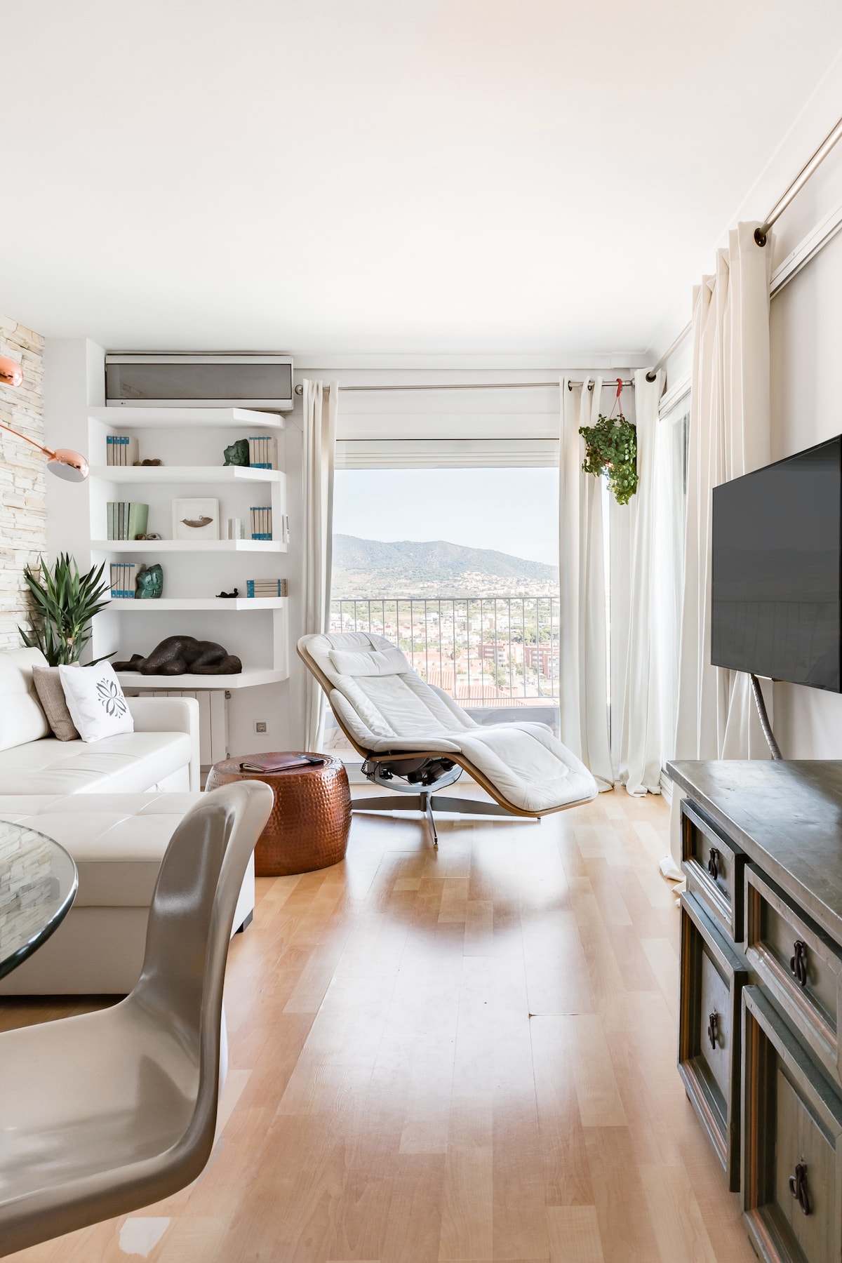 Wake up to Mediterranean views and natural light. Enjoy two private terraces with sea and hill views, including a glass-enclosed terrace with retractable panels for year-round comfort. Just 6 minutes from the beach and 21 minutes by train from the city centre, this calm, well-connected home is ideal for a relaxed, high-quality stay. Personalised holiday advice included. Sail on our private sailboat and experience the coastline of Barcelona/ or Costa Brava with us.Available upon request Airb&b