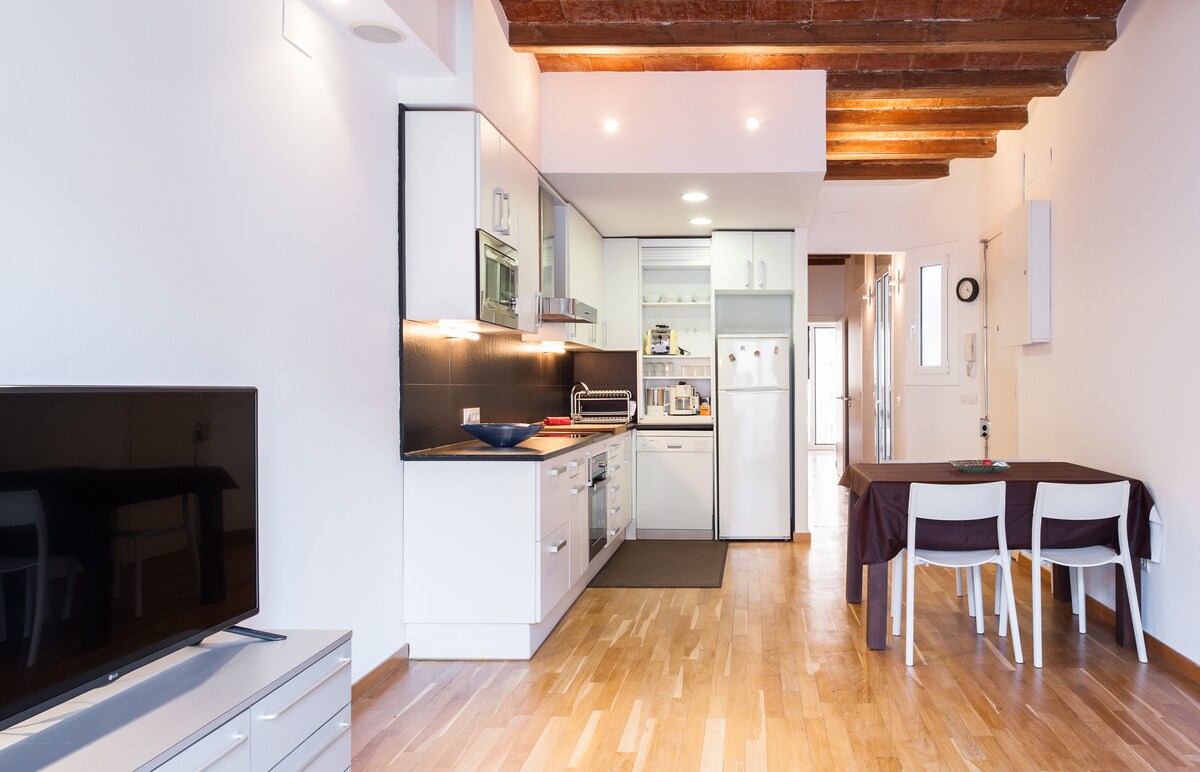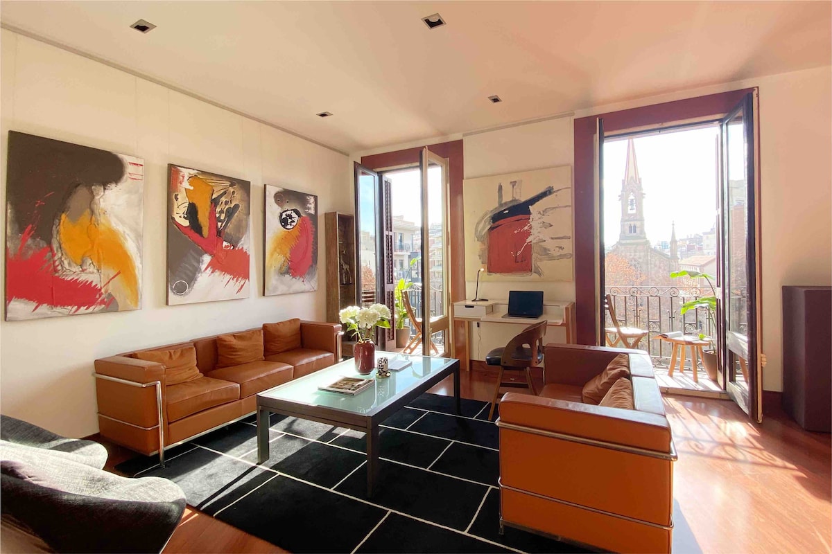Time will pass and you will remember the magical sunsets of Barcelona while you watched the pulse of the city from the large terraced balcony. That's what travel is all about, memories that we will keep forever. This magnificent and spacious apartment, with retro design furniture and details right in the center is the ideal home for your dream vacation.