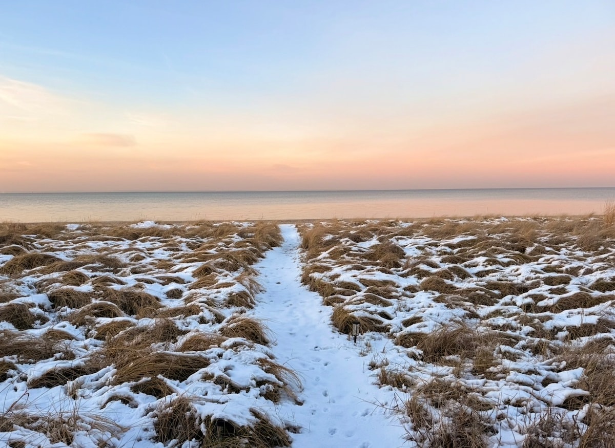 Just a 1.5 hour drive from NYC, this home is the perfect beach getaway spot, with a few steps from the deck to the private beach with its beautiful view across the Great South Bay. Remote work with stunning water views through the wall of windows & in cold weather light a fire while sunlight floods the living space. Two queen bedrooms & bunk bed room sleeps 6 guests, great for families or a small gathering of friends. 5 min drive to ocean beach with great swimming & surfing at Smith Point.